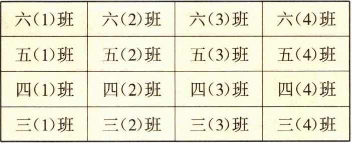 3. 下面是某校三至六年级各班在礼堂观看文艺演出的位置排列图。
