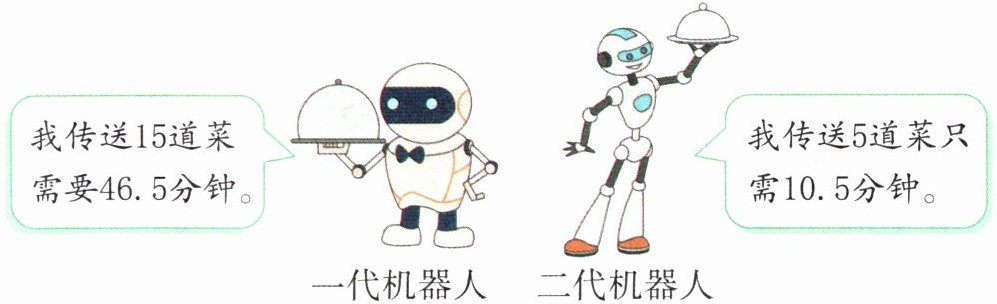 一代机器人:46.5÷15=3.1(分) 二代机器人:10.5÷5=2.1(分)
