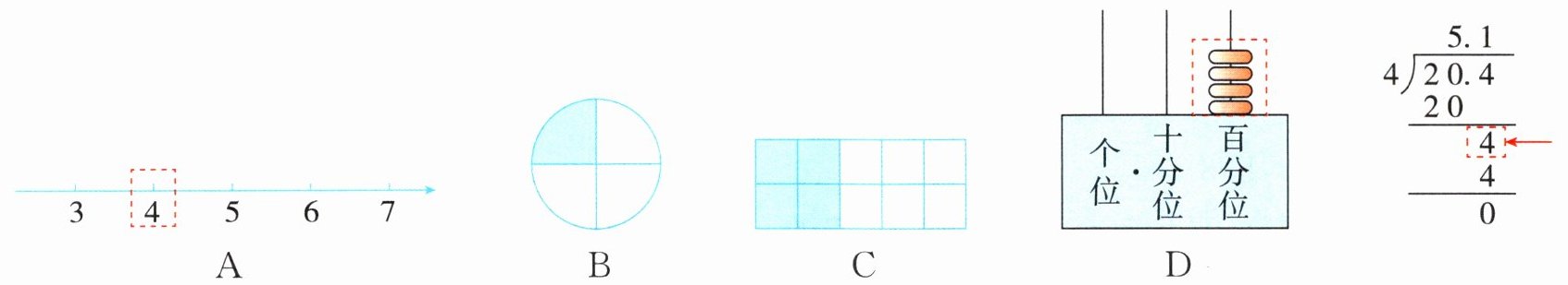 选项D:画框部分在百分位上,$20$个小格表示$20$个$0.1$,与竖式中$20$个$0.1$意义相同,所以该选项正确。