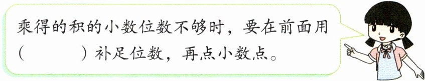 乘得的积的小数位数不够时,要在前面用( )补足位数,再点小数点。