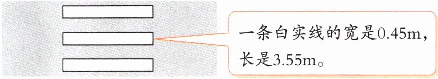 一条白实线的宽是$0.45m$,长是$3.55m$。