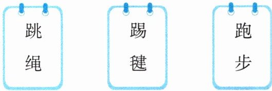 2. 壮壮、淘淘、依依三名同学抽签确定参赛项目,三张卡片上分别写着跳绳、踢毽、跑步。(卡片洗匀倒扣在桌面上)