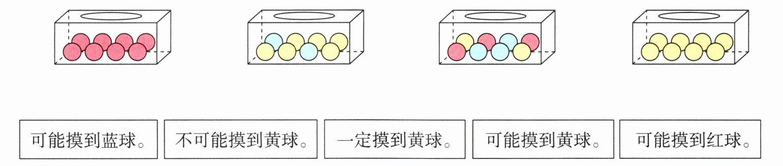 可能摸到蓝球。 不可能摸到黄球。 一定摸到黄球。 可能摸到黄球。 可能摸到红球。