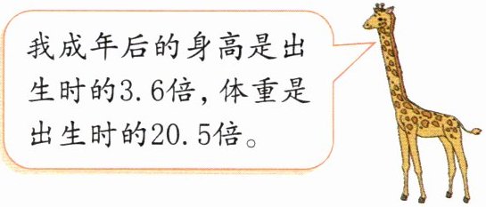 4. 长颈鹿是世界上现存最高的陆生动物。一只长颈鹿出生时身高1.5m,体重51.4kg。这只长颈鹿成年后多高多少米?重多少千克?