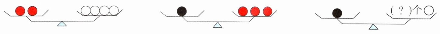 5. 要使第三架天平平衡,天平右边应放( )个白球。