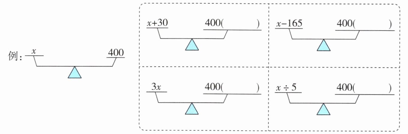 2. 根据图例在下面每幅图的括号里填上适当的符号和数,使天平平衡。
