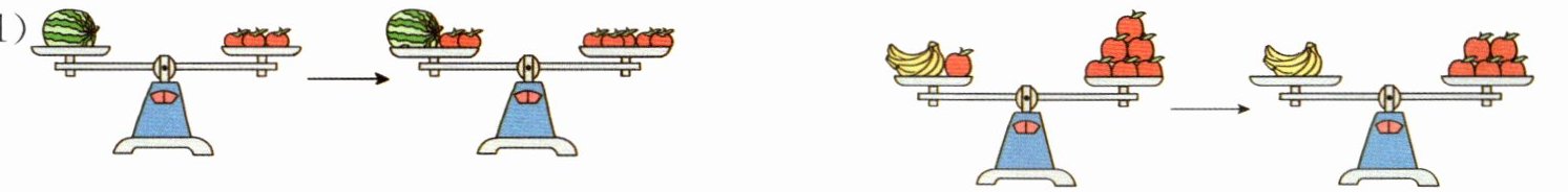 (1)1个苹果 解析:根据等式的性质1,左边添加1个苹果,右边也应该添加1个苹果。