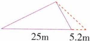 5.如图,把一块三角形实验基地的底边延长5.2m,高不变,它的面积就增加$26m^2。$原来实验基地的面积是多少平方米?