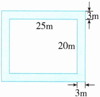 3. 有一个长25m、宽20m的花坛,如果在这个花坛的四周修3m宽的小路(如图),小路的面积是多少平方米?