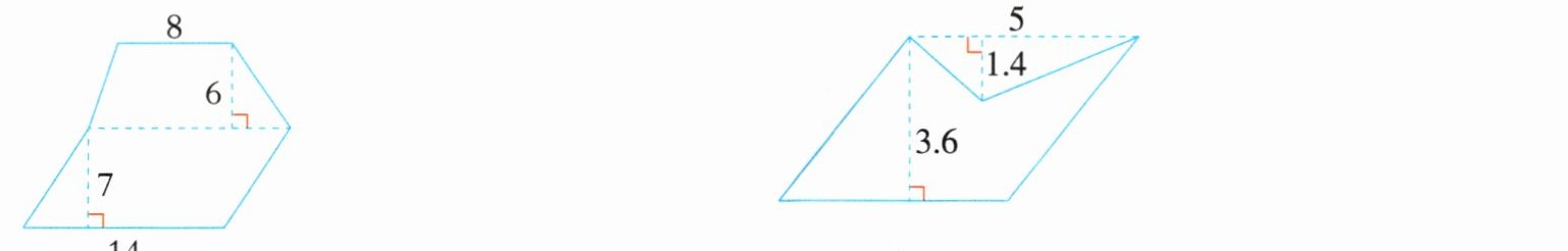 5×3.6 - 5×1.4÷2=14.5(cm²)