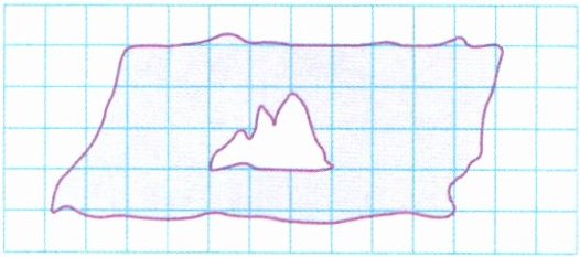 5. 有一块草坪近似平行四边形,草坪中间有一座假山,形状如图,这块草坪的面积约是多少平方米? (每个小方格的面积是$1m^2)$