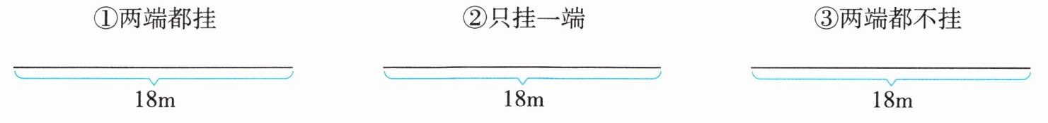 一个舞台长18m,每隔6m挂一面彩旗。(用↑表示彩旗)