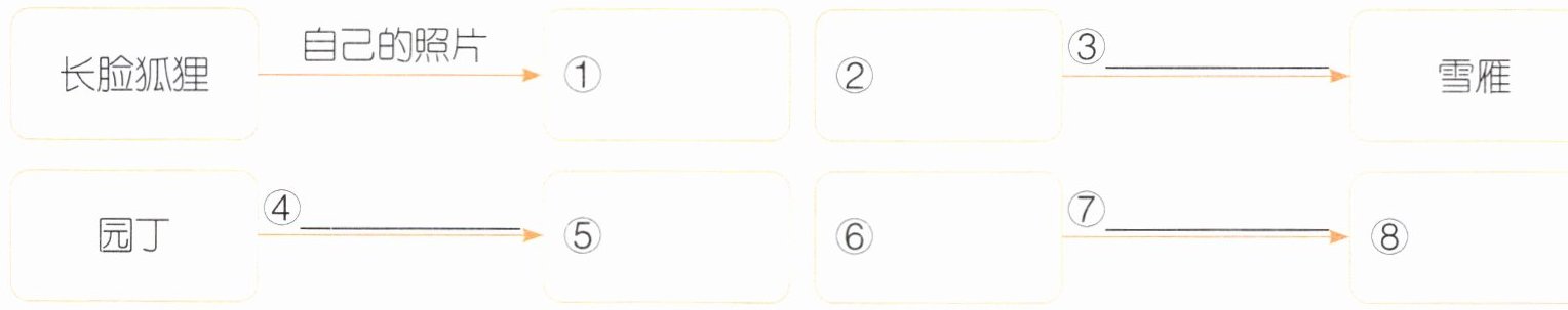 2.①北极狐 ②大雁 ③自己的羽毛 ④一束干玫瑰花和一把种子 ⑤因纽特人 ⑥金花鼠 ⑦土豆 ⑧旅鼠