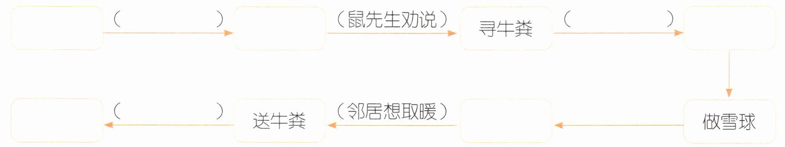 ①邻居换牛粪 ②滚铁圈 ③追肥皂泡 ④把雪球和牛粪放在一起