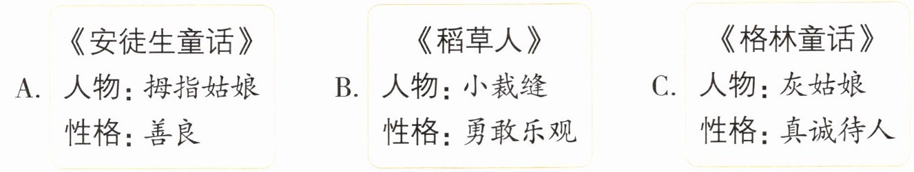 2 (2025·湖北省武汉市黄陂区) 下列三张童话人物卡中, 信息有误的一项是 ( )