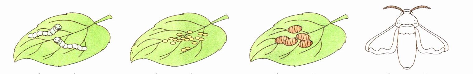 3 获取信息 阅读“养蚕观察记录表”,我知道了蚕的发育过程,请把对应的字母写在图片下面的括号里。(4分)