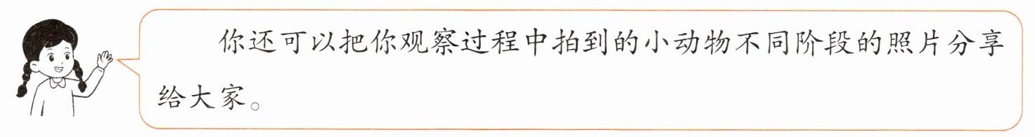 你还可以把你观察过程中拍到的小动物不同阶段的照片分享给大家。