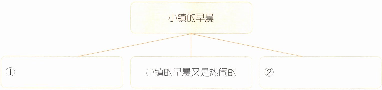 1 整体感知 文章围绕“小镇的早晨”写了哪三个方面的内容?请你从文中找出关键语句,填在下面的框图中。(2分)