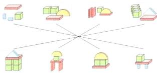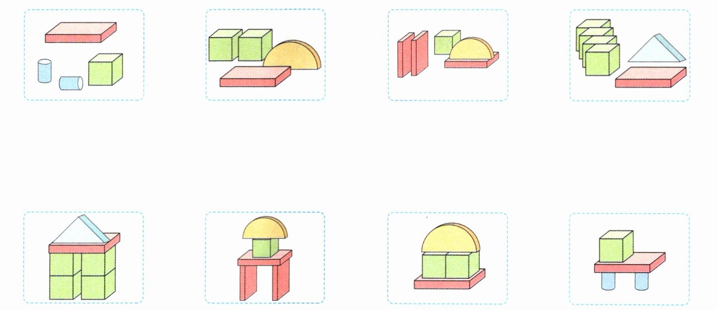 2. 哪堆积木能摆出下面的组合图形?连一连。(建议