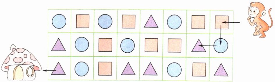 4. 请你帮小猴按照□、○、△的路线走回家。(建议 2 分钟完成)