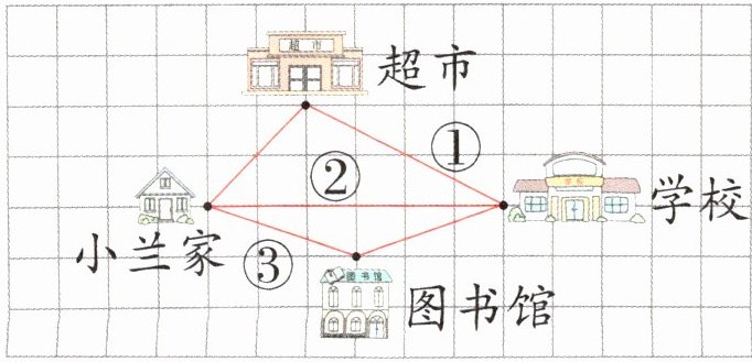 3. 小兰从家出发去学校,怎样走路线最近?请把最短的路线描出来。(建议2分钟完成)