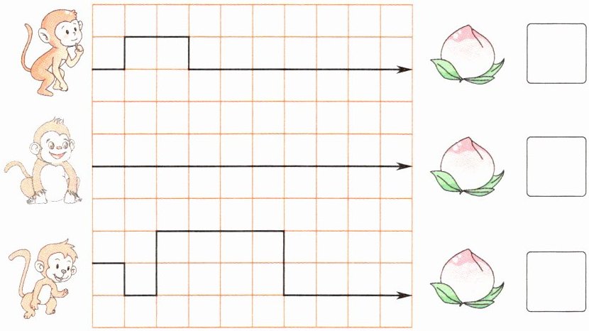 2. 下面的小猴跑得一样快,谁能最先吃到桃?画“√”。(建议3分钟完成)