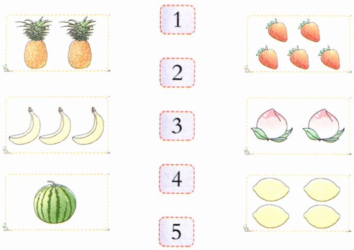 1. 数一数下面每组图中物品的数量,将图与对应的数连起来。(建议 2 分钟完成)