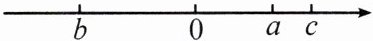 9. 已知$|a| = 2$,$|b| = |c| = 3$,且表示有理数$a$,$b$,$c$的点在数轴上的位置如图所示,求$a + (-b) + c$的值。