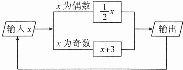 (3)当x为偶数时,$\frac{1}{2} × \frac{1}{2} × \frac{1}{2}x = x,$解得$x = 0;\frac{1}{2} × \frac{1}{2}x + 3 = x,$解得$x = 4;\frac{1}{2}(\frac{1}{2}x + 3) = x,$解得x = 2;当x为奇数时,$\frac{1}{2} × \frac{1}{2} × (x + 3) = x,$解得$x = 1;\frac{1}{2}(x + 3) + 3 = x,$解得x = 9(舍去).综上所述,满足条件的x的值为0或1或2或4.