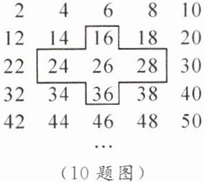 10. 逻辑推理 将连续的偶数 $ 2, 4, 6, 8, 10, \cdots $ 排列成如图所示的数表,现将图中的十字框上下左右平移,若框住的 $ 5 $ 个数字之和是 $ 330 $,则框中最小的数是