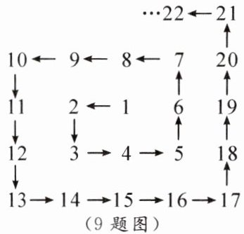 8. 如图所示的数阵由从1开始的连续自然数排列而成.