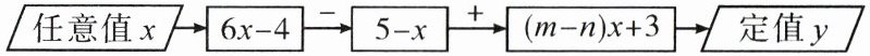 10. 在如图所示的一个运算程序中,当输入任意值 $x$ 后,会发现输出的结果 $y$ 是一个固定值,则多项式 $4(m - n)+23$ 的值为()