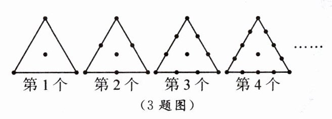 3. 如图,将形状大小完全相同的小圆点“·”按照一定规律摆成图案,其中第1个图案中有4个小圆点,第2个图案中有7个小圆点,第3个图案中有10个小圆点……则第10个图案中小圆点的个数为