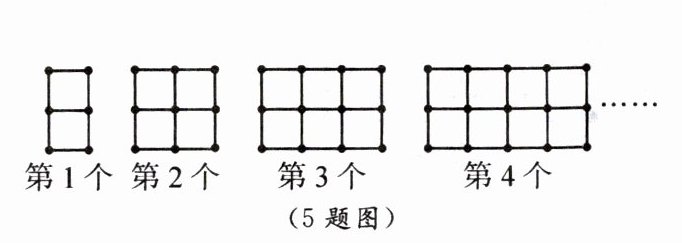5. 如图所示的图案是由火柴棒按一定规律拼成的,第1个图案中有2个正方形,第2个图案中有5个正方形,第3个图案中有8个正方形……则第5个图案中有