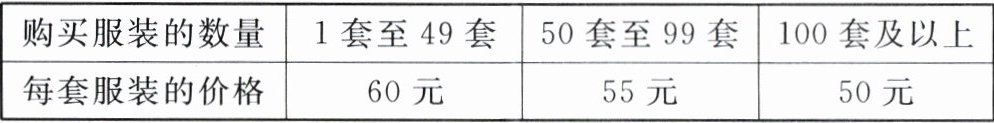 23. (8 分)某区组织的韵律操表演,甲、乙两校共 100 人准备统一购买服装(一人买一套),其中甲校参加表演的人数多于乙校的人数,如果两所学校分别单独购买服装,一共需付 5710 元.下面是服装厂给出的演出服装的价格表: