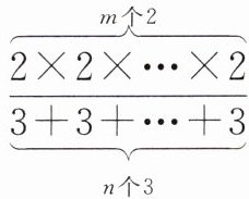 2. $ \dfrac{\underbrace{2 × 2 × \cdots × 2}_{m 个 2}}{\underbrace{3 + 3 + \cdots + 3}_{n 个 3}} $ 的正确结果为 (