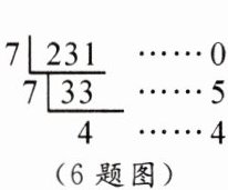 6. 将十进制数 231 转换为七进制数,其转换方法如图所示,并记为$231=(450)_7$,则将十进制数 345 转换为七进制数为
