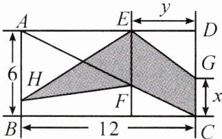 (1)易得三角形$EFH$与三角形$EFA$的面积相等,所以$S = S_{三角形ACD} - S_{三角形EDG} = \frac{1}{2} × 6 × 12 - \frac{1}{2}y(6 - x) = 36 - \frac{1}{2}y(6 - x)$。