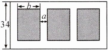 6. 如图,某学校计划在宽为$34 m$的大长方形场地中,并排新建三个大小相同的篮球场,三个篮球场之间及篮球场与长方形场地边沿的距离均为$a m$,篮球场的宽为$b m$。(图中单位:$m$)