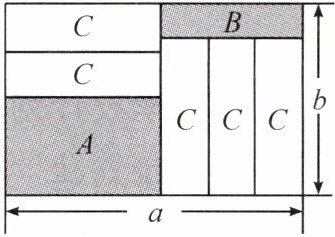 10. 如图,长为 $ a $、宽为 $ b $ 的大长方形被分割成 7 个图形,除阴影图形 $ A $,$ B $ 外,其余部分为形状和大小完全相同的小长方形,且小长方形 $ C $ 的宽为 4.