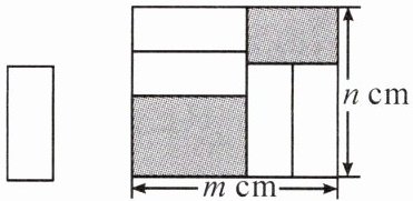 15. 如图,把 4 张形状、大小完全相同的小长方形卡片不重叠地放在一个底面为长方形(长为$m$cm,宽为$n$cm)的盒子底部,盒子底面未被卡片覆盖的部分用阴影表示,则图中两块阴影部分的周长和是(