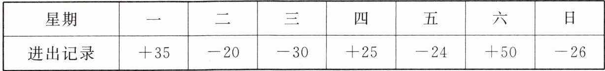 2. 已知某粮库已存有粮食100 t,本周内粮库进出粮食(运进为正,单位:t)的记录如下表所示.