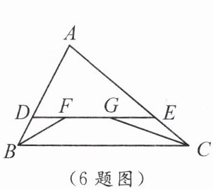 6. 如图,在 $ \triangle ABC $ 中,$ DE // BC $,$ \angle ABC $ 和 $ \angle ACB $ 的平分线分别交 $ DE $ 于点 $ F $,$ G $.若 $ FG = 2 $,$ ED = 5 $,则 $ BD + CE $ 的值为(