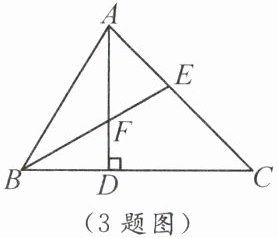 3. 如图,在 $ \triangle ABC $ 中,$ \angle ABC = 60^{\circ} $,$ \angle C = 45^{\circ} $,$ AD $ 是边 $ BC $ 上的高,$ \angle ABC $ 的平分线 $ BE $ 交 $ AD $ 于点 $ F $,则图中的等腰三角形有(