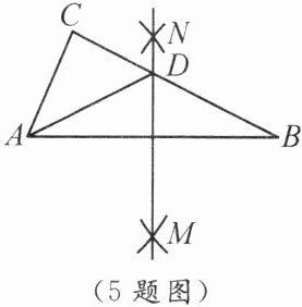 5. 如图,在 $ \triangle ABC $ 中,分别以点 $ A $ 和点 $ B $ 为圆心,大于 $ \frac{1}{2}AB $ 的长为半径画弧,两弧相交于点 $ M $,$ N $,作直线 $ MN $,交 $ BC $ 于点 $ D $,连接 $ AD $.若 $ \triangle ADC $ 的周长为 23,$ AB = 17 $,则 $ \triangle ABC $ 的周长为(