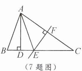 7. 如图,在 $ \triangle ABC $ 中,$ AB = AE $,且 $ AD \perp BC $,$ EF $ 垂直平分 $ AC $,交 $ AC $ 于点 $ E $,交 $ BC $ 于点 $ E $.若 $ \triangle ABC $ 的周长为 16,$ AC = 6 $,则 $ CD $ 的长为(