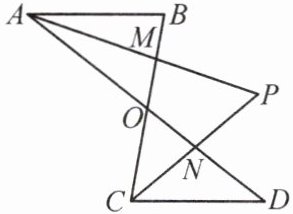 7. 如图,$ AB // CD $,$ AP $,$ CP $ 分别平分 $ \angle BAD $ 和 $ \angle BCD $,$ AD $ 与 $ BC $ 相交于点 $ O $,$ AP $ 与 $ BC $ 相交于点 $ M $,$ CP $ 与 $ AD $ 相交于点 $ N $。
