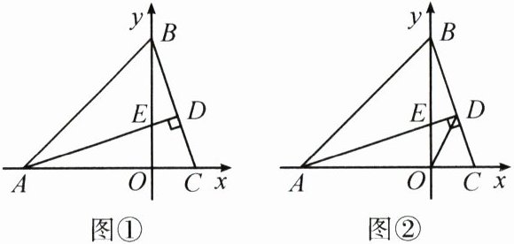 (1)如图①,若点$E$的坐标为$(0,1)$,求$\triangle ABC$的面积;