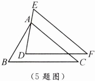 5. 如图,已知$\triangle ABC≌\triangle DEF$,$DF// BC$,且$\angle B=60^{\circ}$,$\angle F=40^{\circ}$,点$A$在$DE$上,则$\angle BAD$的度数为(