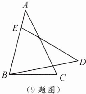 9. 如图,已知$\triangle ABC≌\triangle DEB$,$\angle C=64^{\circ}$,$\angle A=40^{\circ}$,$AE=2$,$BC=5$,则$DE$的长为